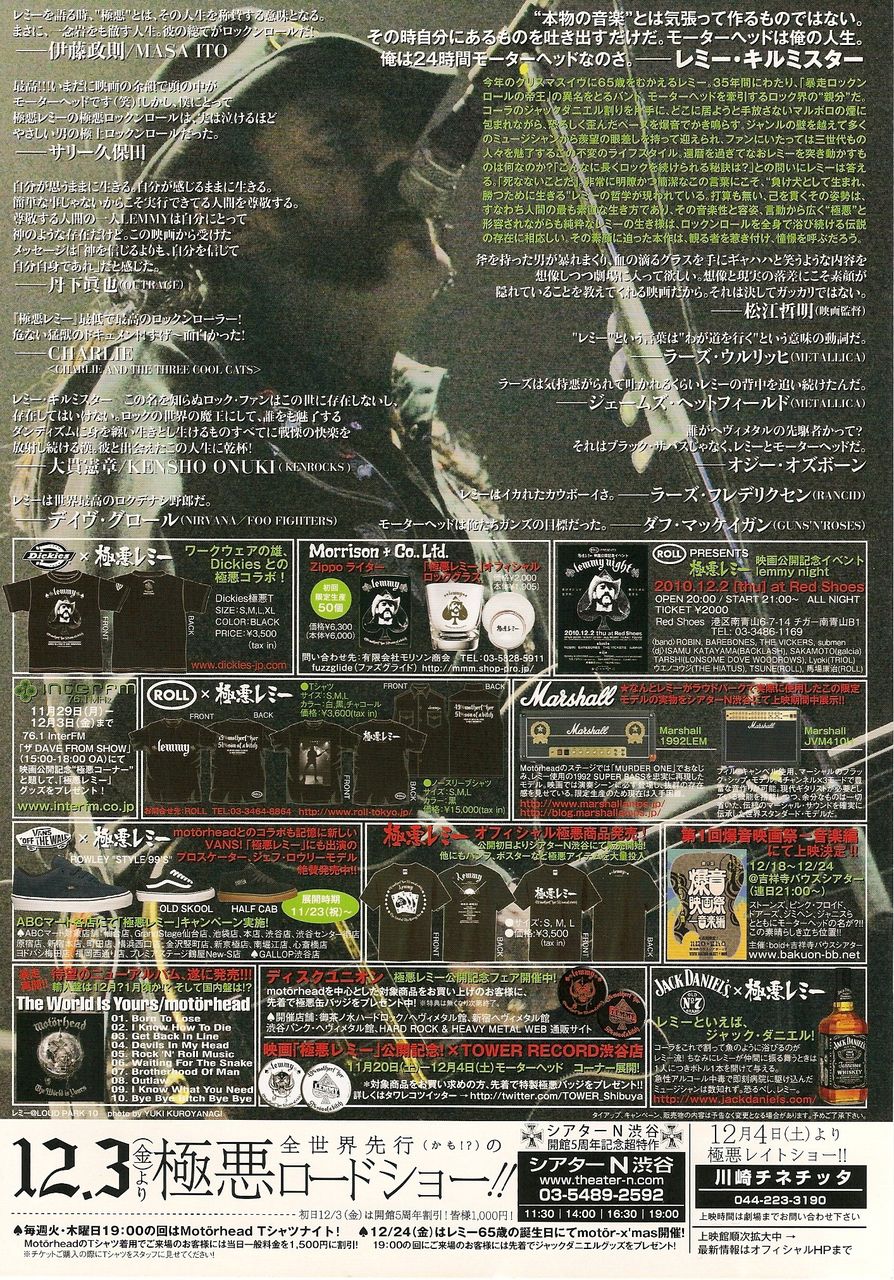 メタリカも出演、映画『極悪レミー』のチラシをもらってきました。