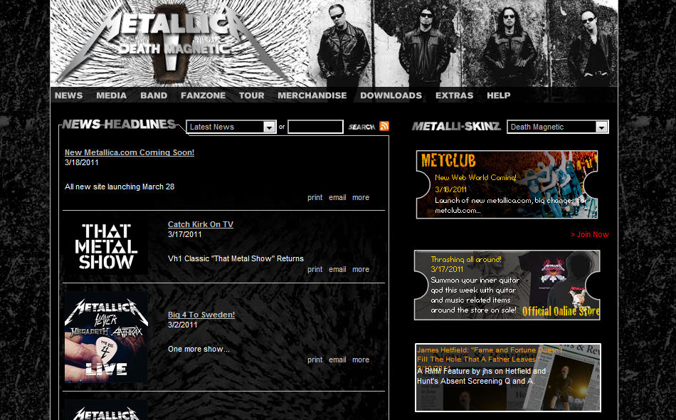 メタリカオフィシャルサイト、Metallica.comが