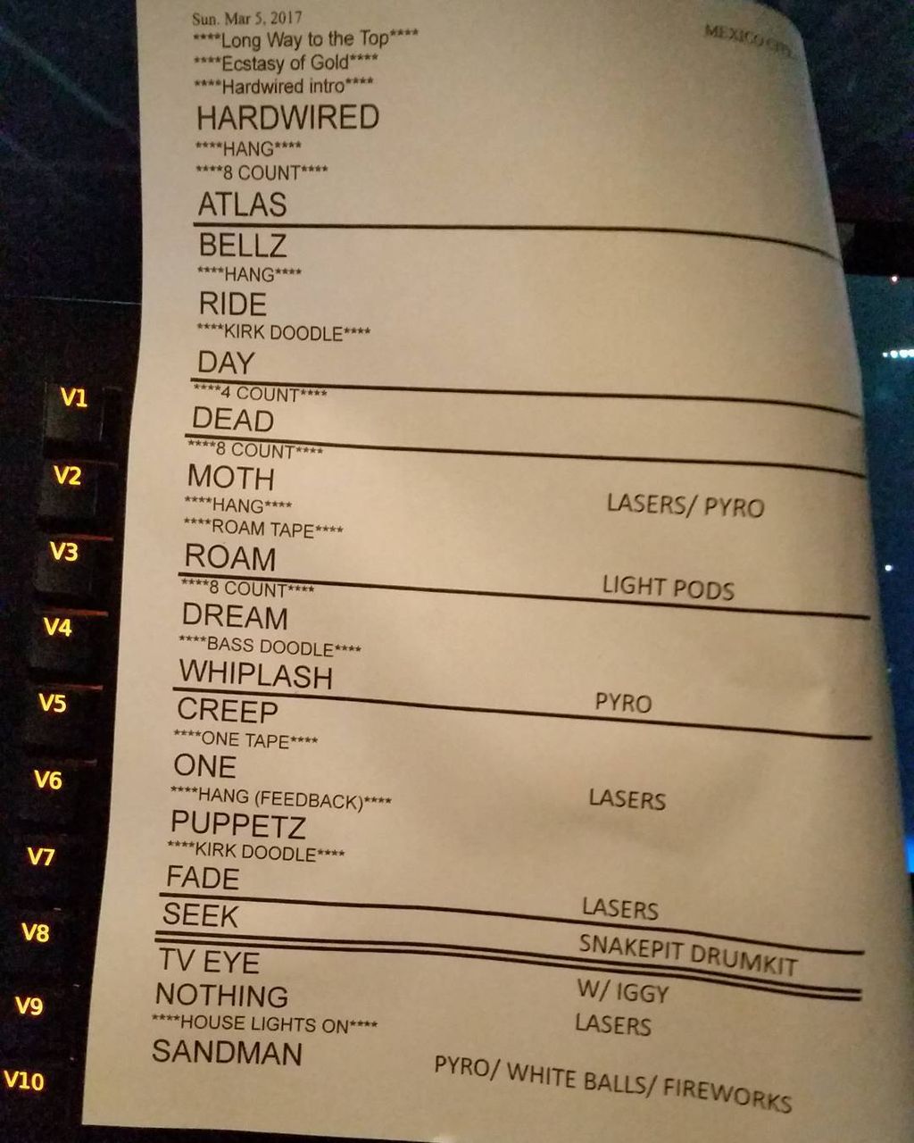 今回のメキシコ公演では、同じく新譜からの「Now That We're Dead」で、メンバー4人でドラムを叩く試みも行われました。(6分頃から)